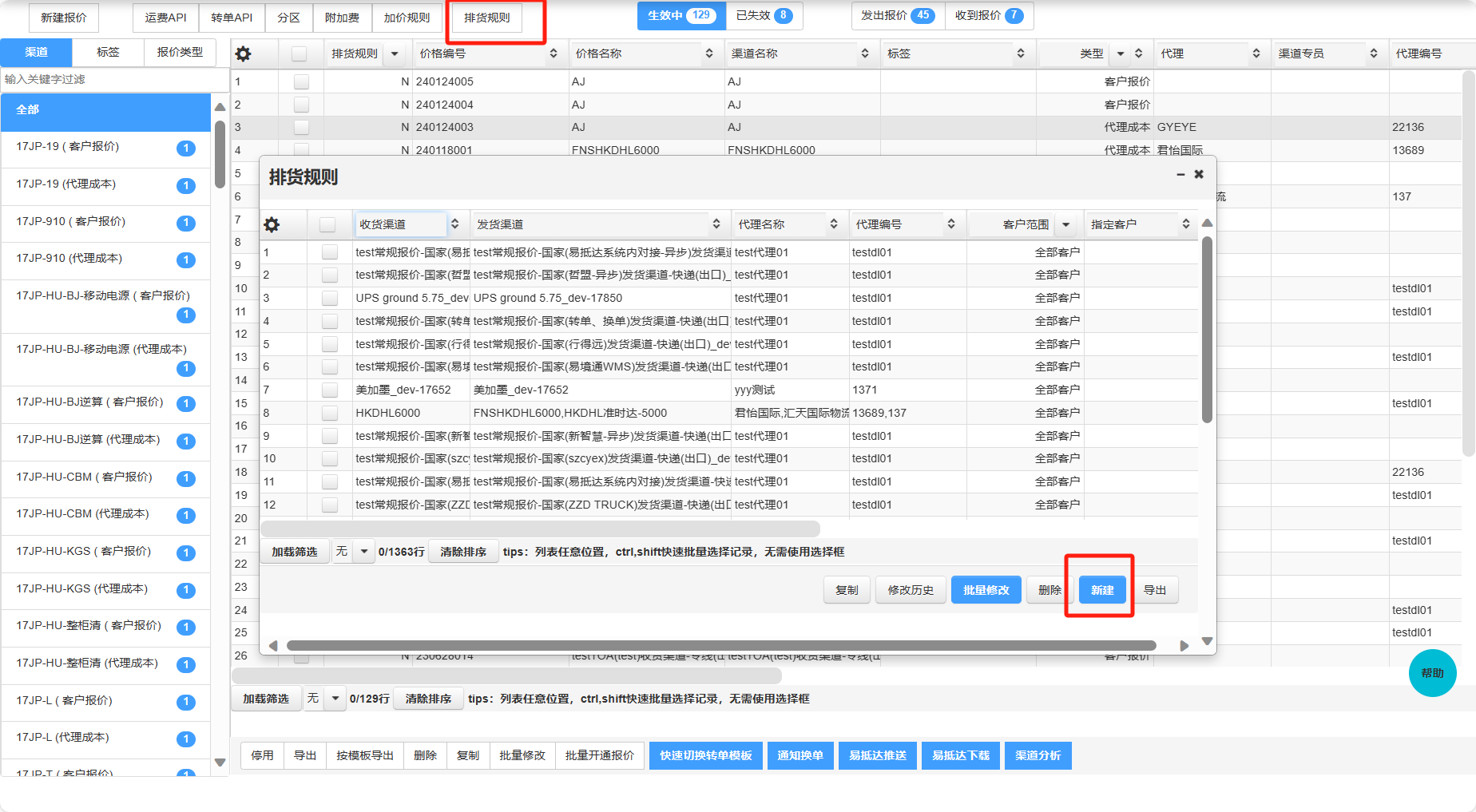 - 若多选收货渠道,会根据每个收货渠道匹配添加的代理价格,一键生成多个排货规则