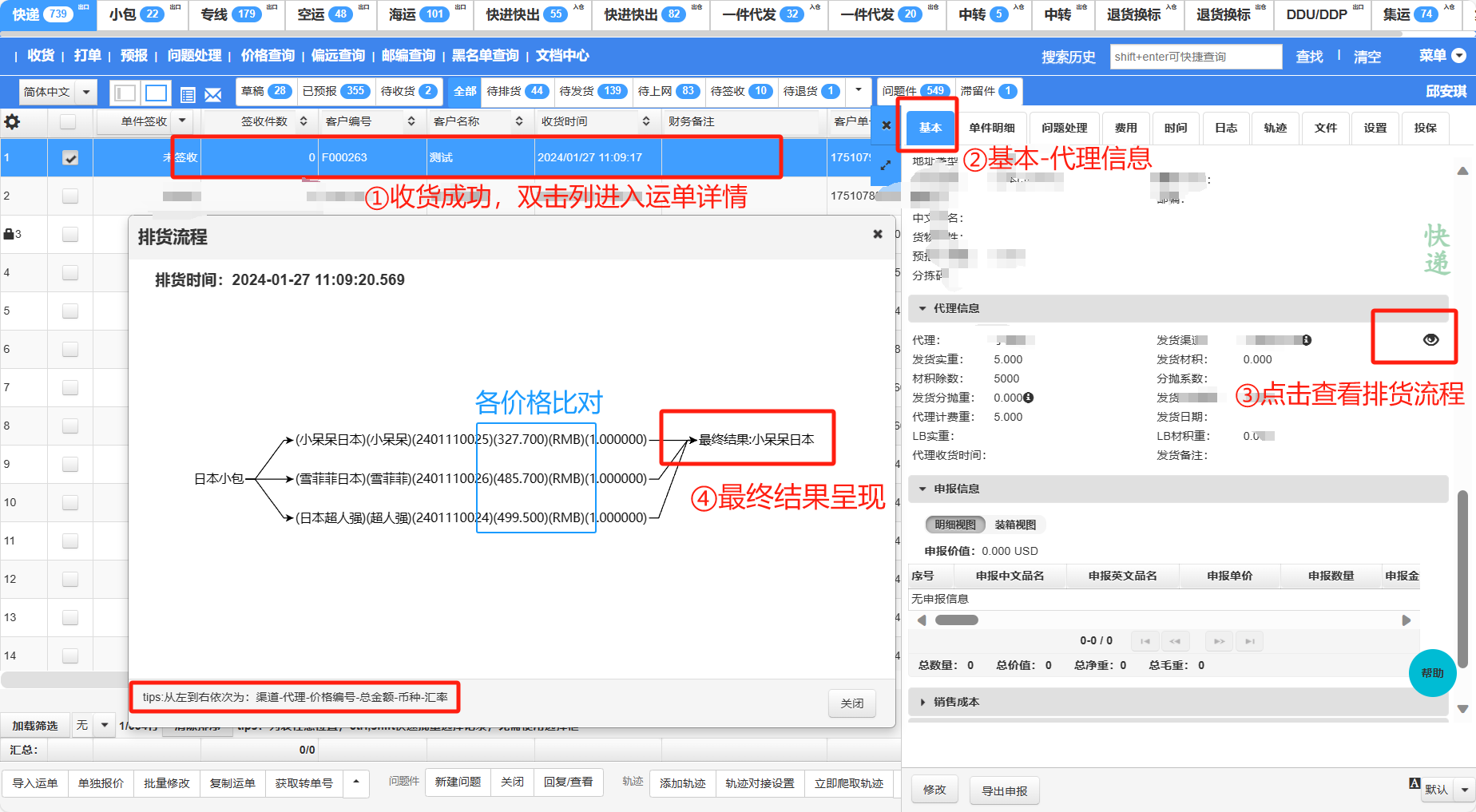 根据收货渠道与多个代理价格的绑定制订排货规则,自动对运单进行比价排货,选择最优的代理渠道