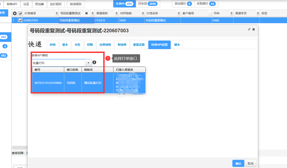 3、选择你需要绑定的转单API,绑定打单接口,选择后点确定