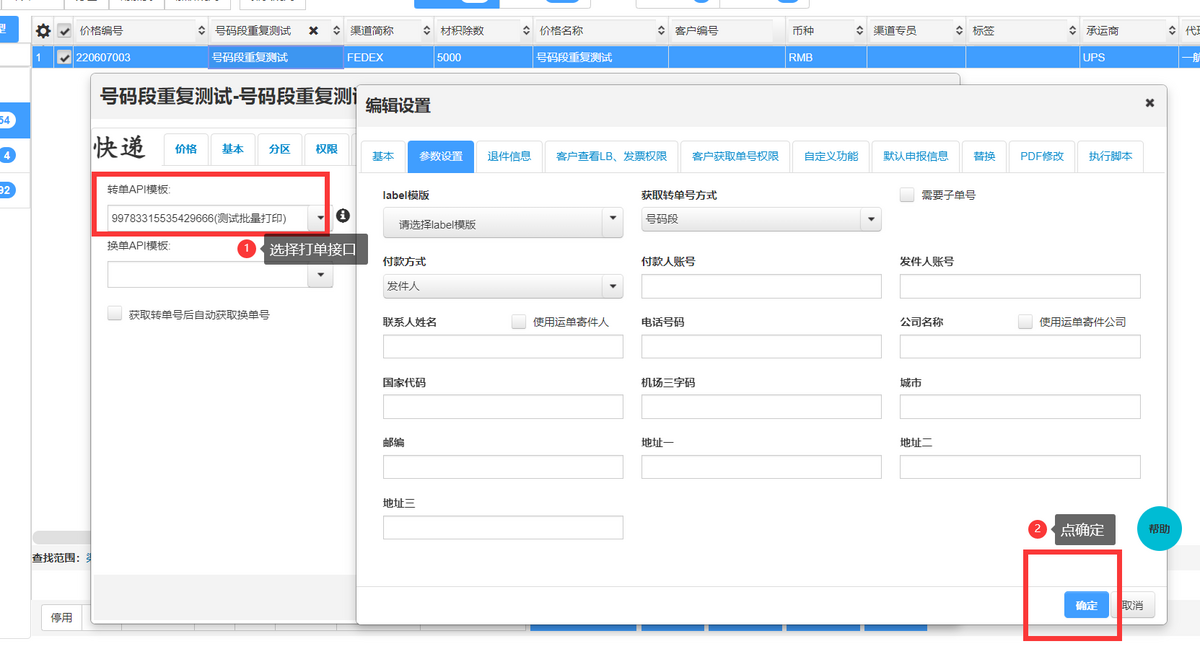 选择打单接口,点击确认