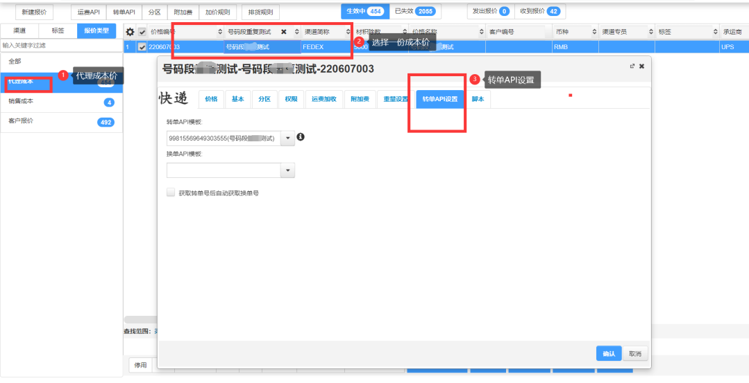 选择一份代理成本价的渠道双击这份价格,在这份价格的转单API设置