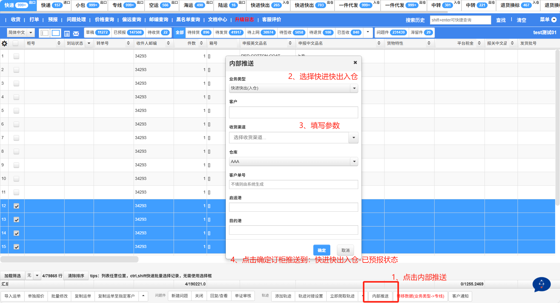 注意:推送将推送至快进快出入仓---