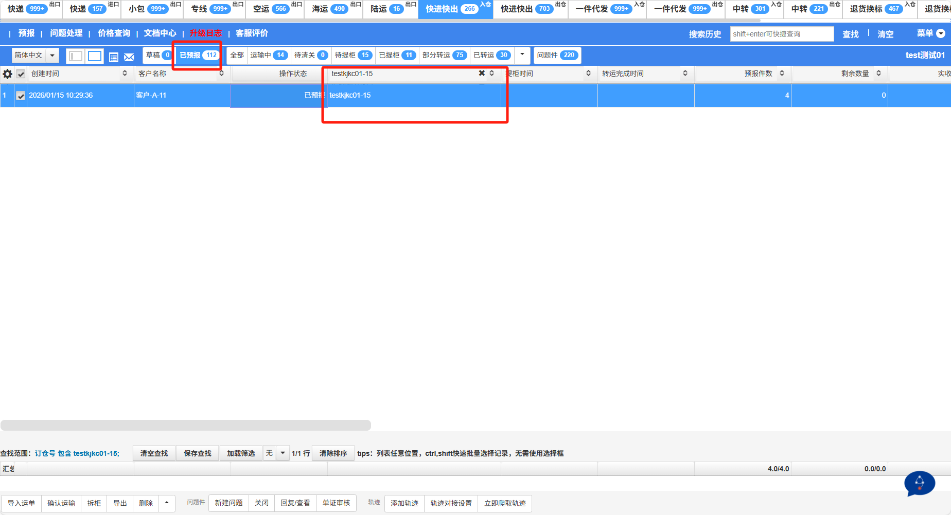 3、切换到快进快出入仓操作,已预报状态下能找到对应的单