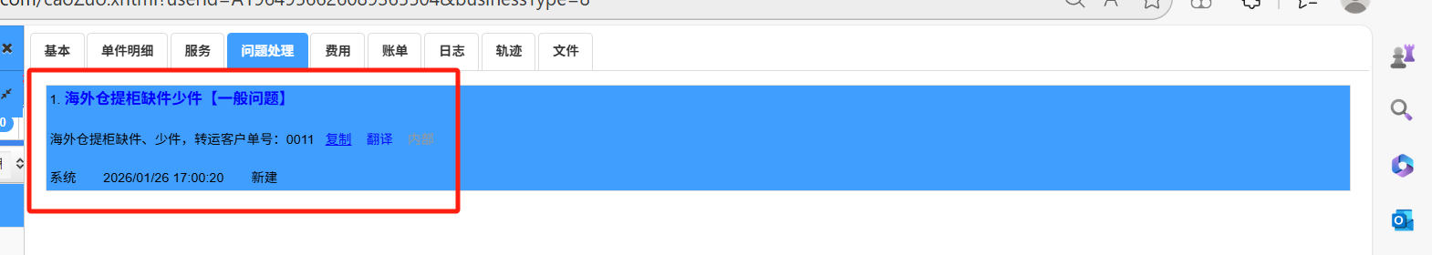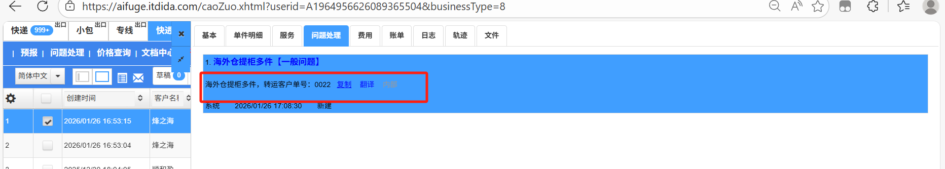 勾选生成问题件,在下方生成问题件数据框,按业务需要填写相关的提示即可 根据客户单号变量提示: |