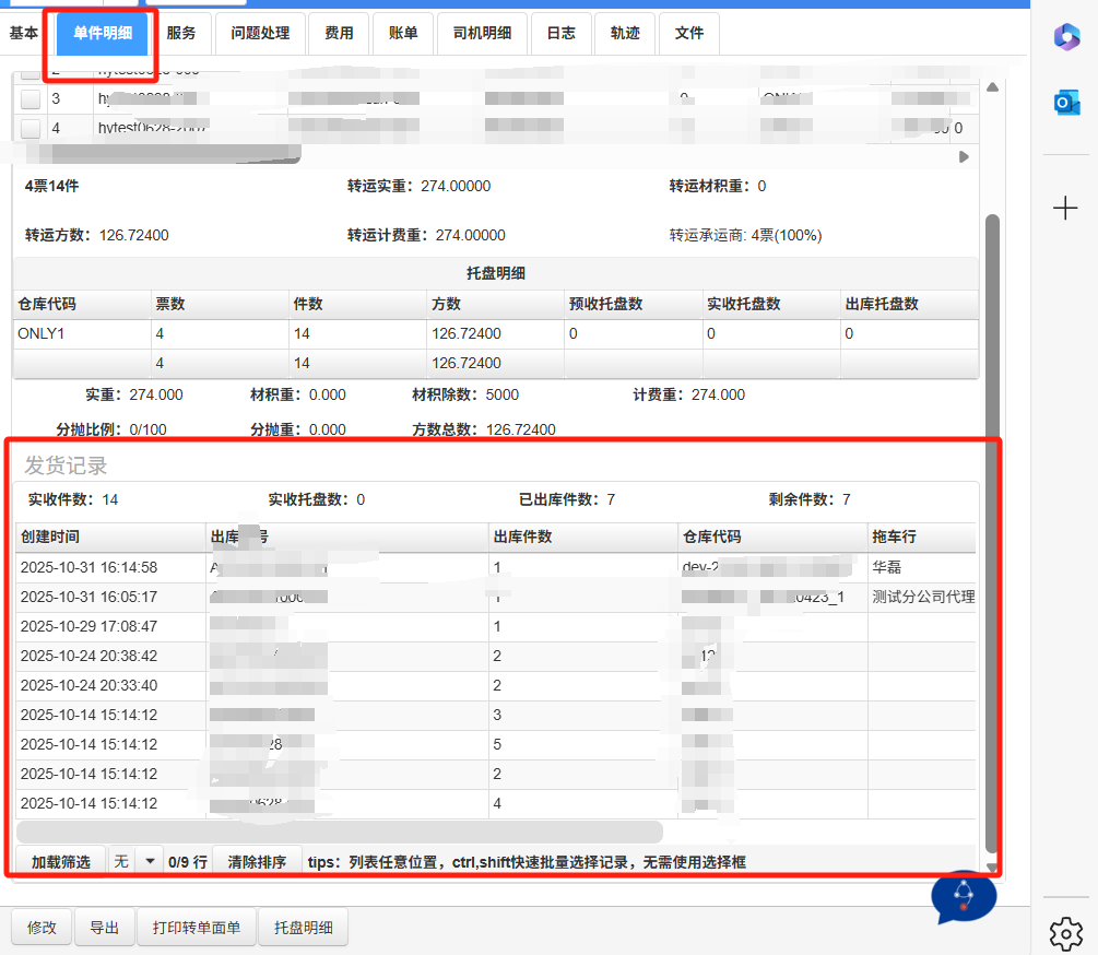 | 部分转运 | 完成部分件数的出库,还有部分件数暂存仓库中 |
