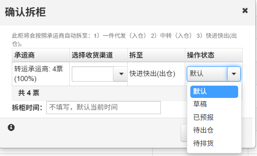 拆柜出库是无仓储停留的极速流转动作,直接进行拆柜出库;不针对某一状态做约束