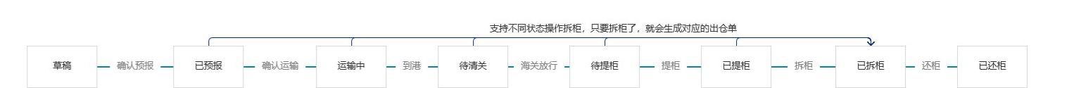 | 已提柜 | 已完成港口提柜,并在中转仓 / 海外仓暂存,等待操作确认出库 |