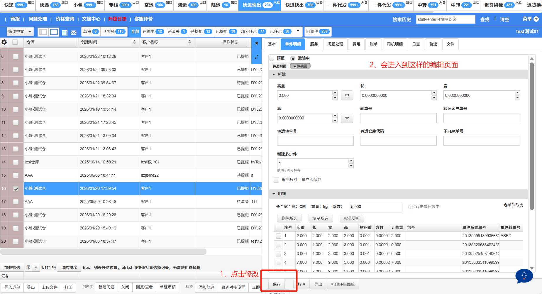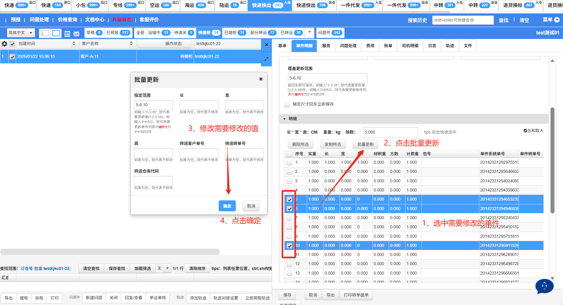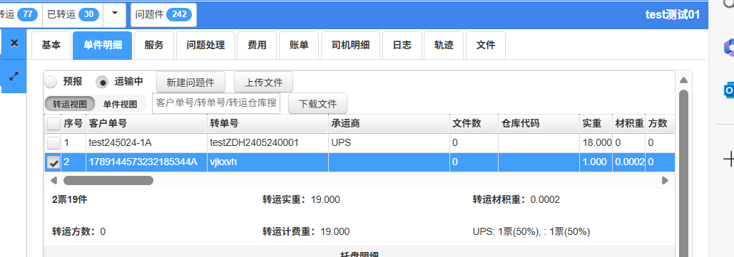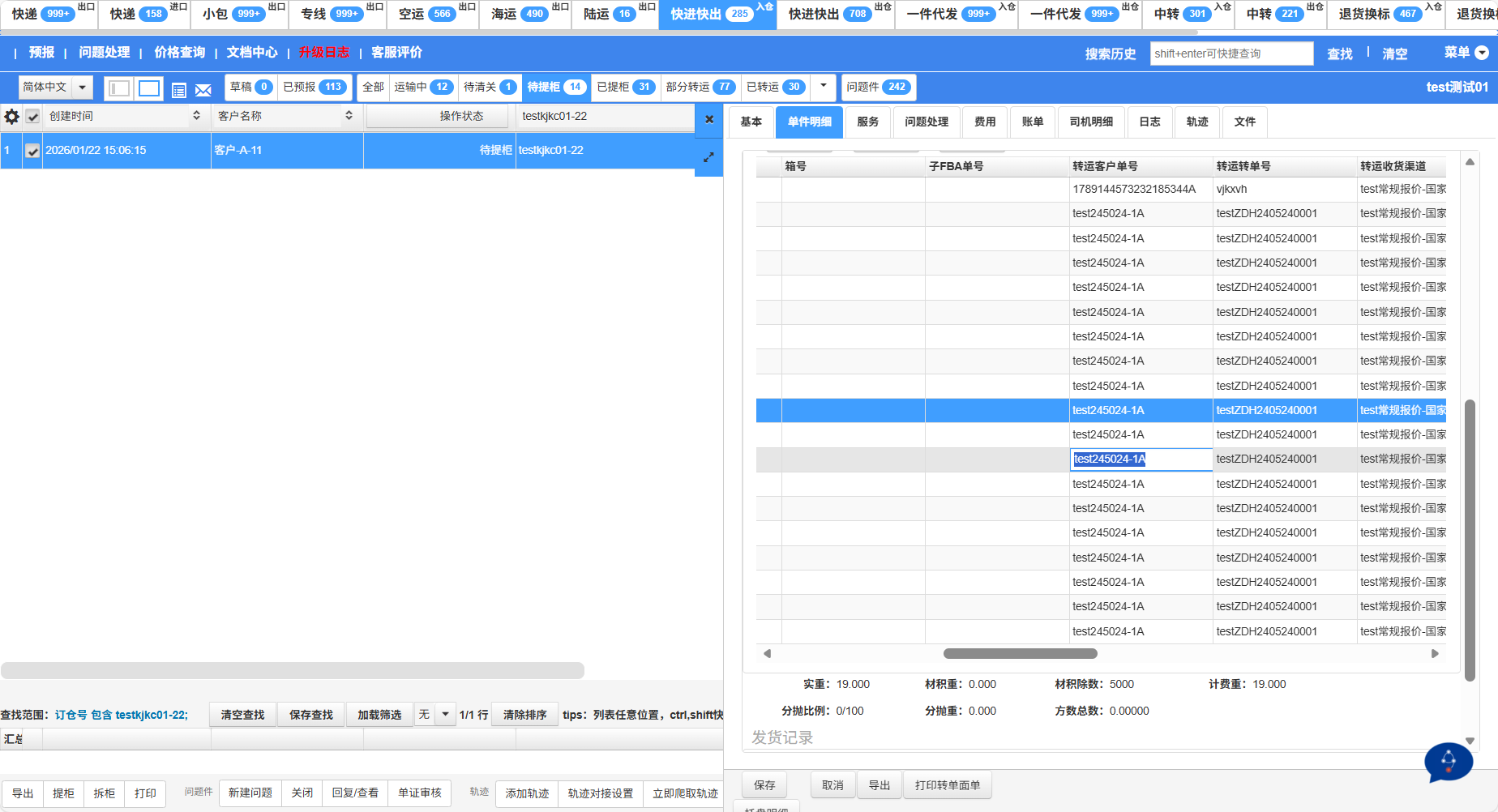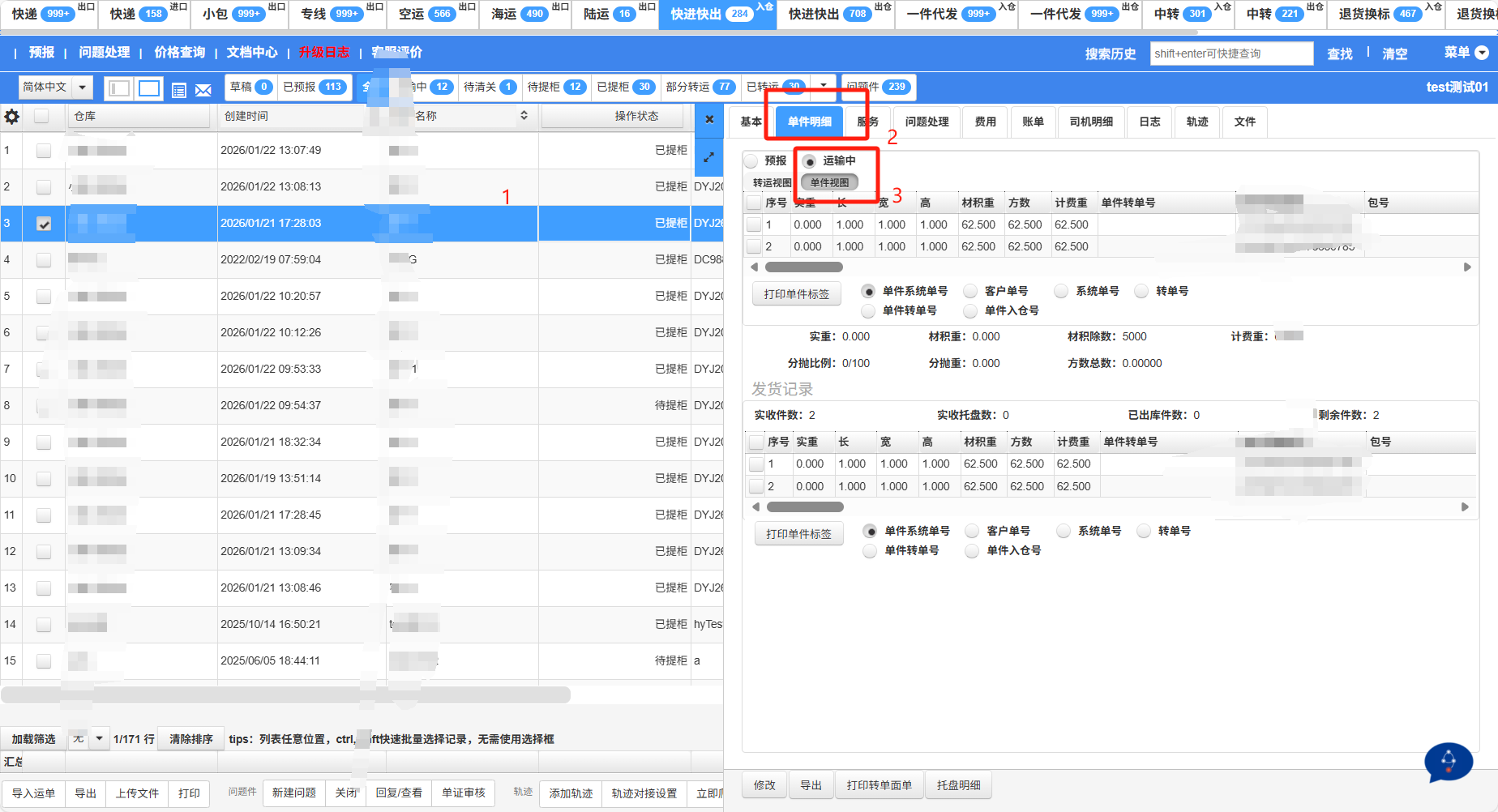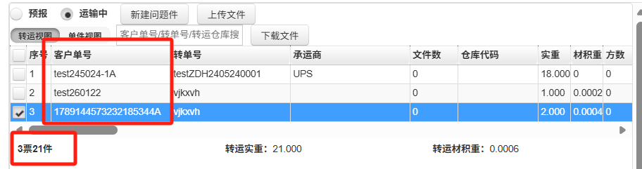 注意:这里按照转运客户单号来分票,每票货里面包含了多件货