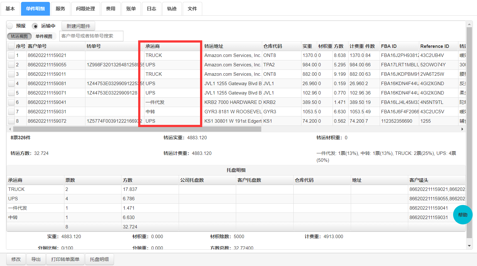 其他承运商的会拆到快进快出出仓待发货