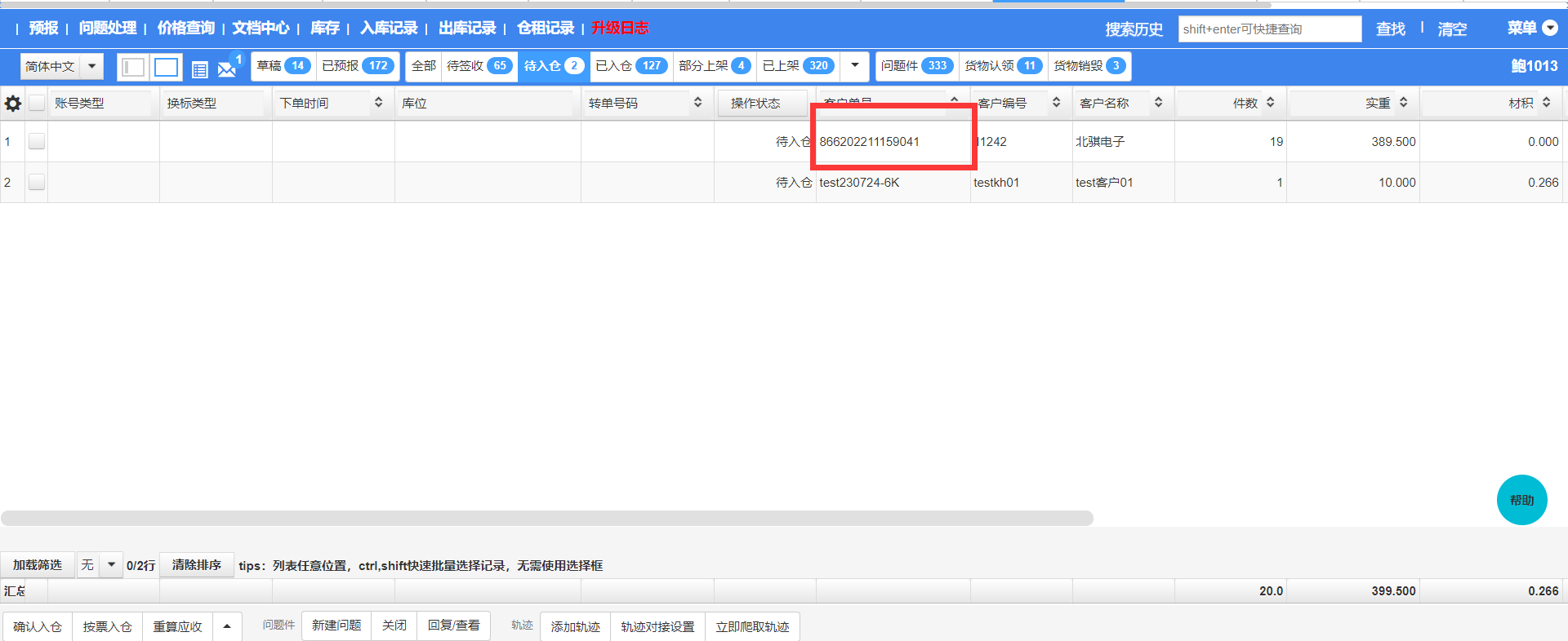 3.拆柜成功后,进入相应的业务的【待入仓】状态,即可看到拆出的运单